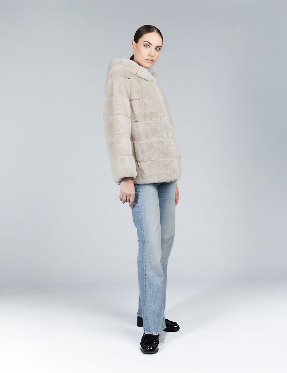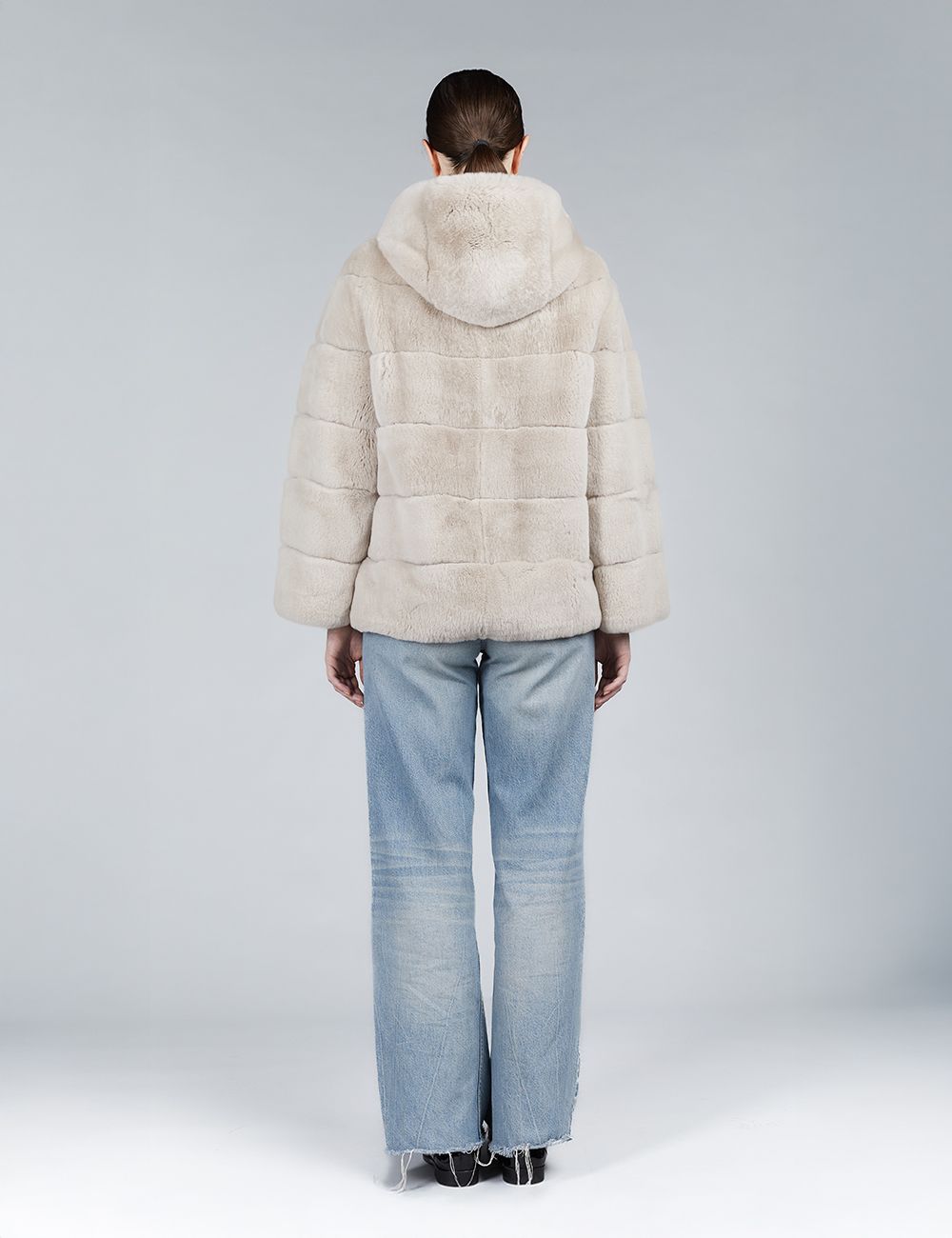 Giacca oversized in rex con cappuccio beige 65cm