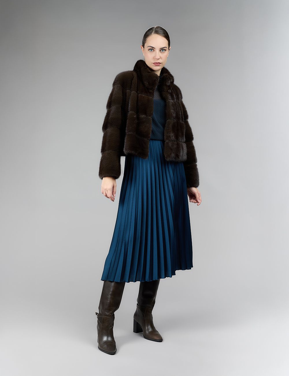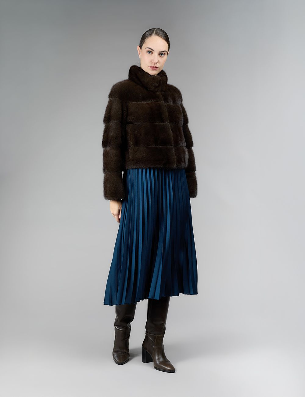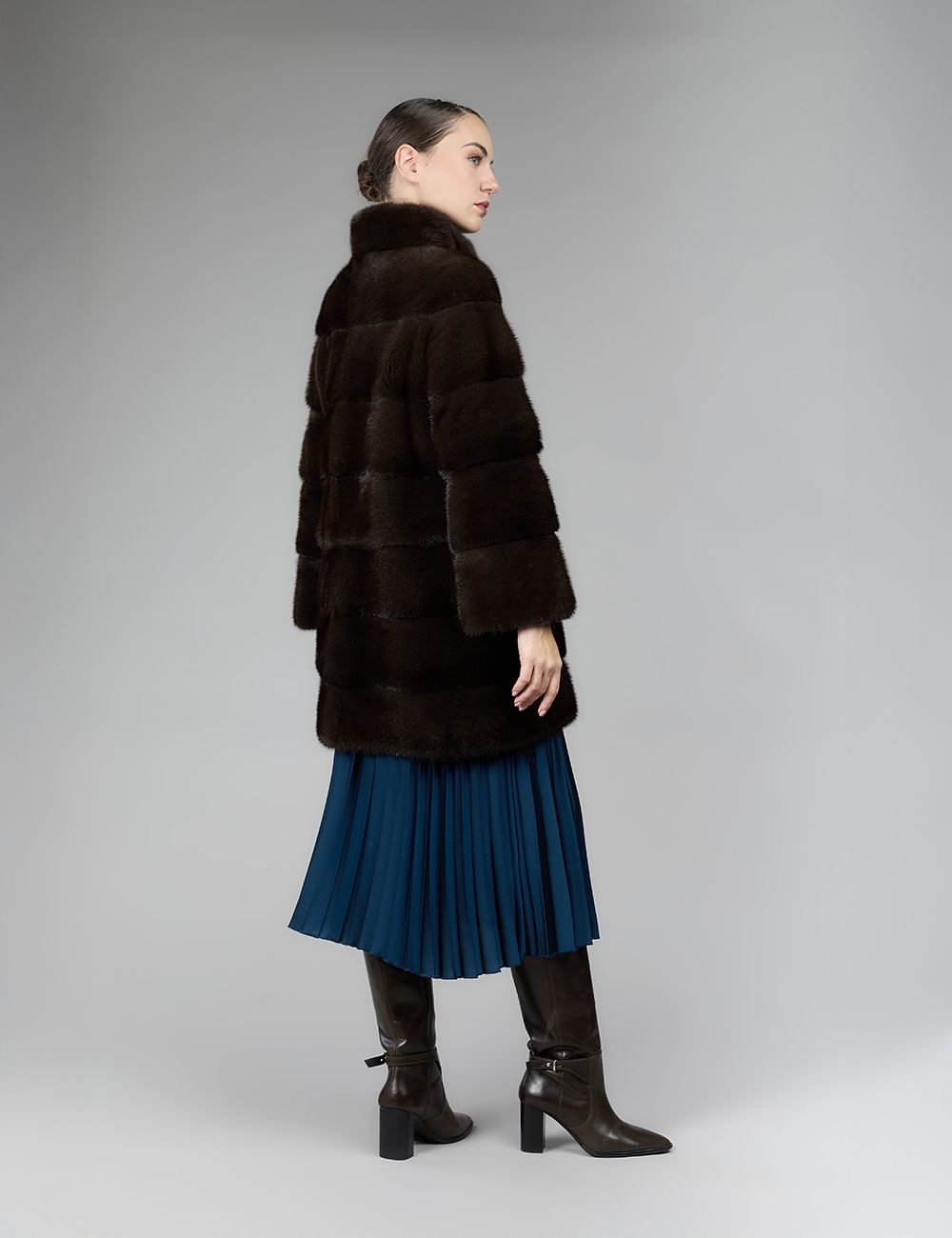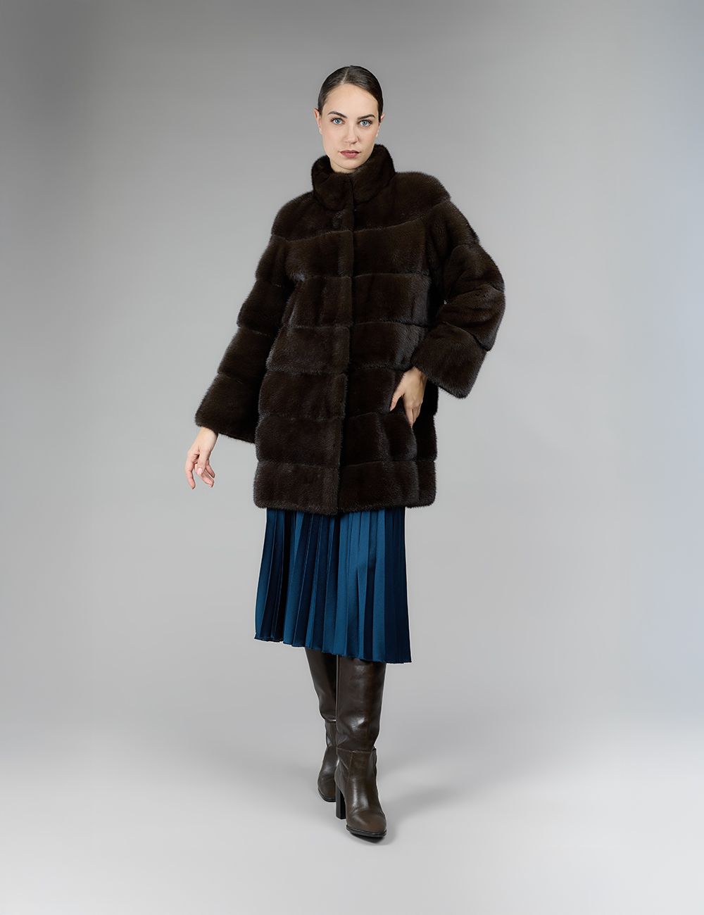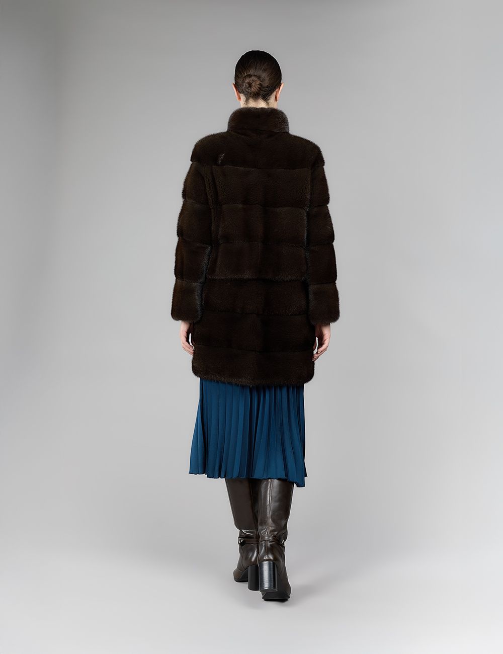 Cappotto di visone con collo alto, mogano, con parte inferiore removibile, 85 cm