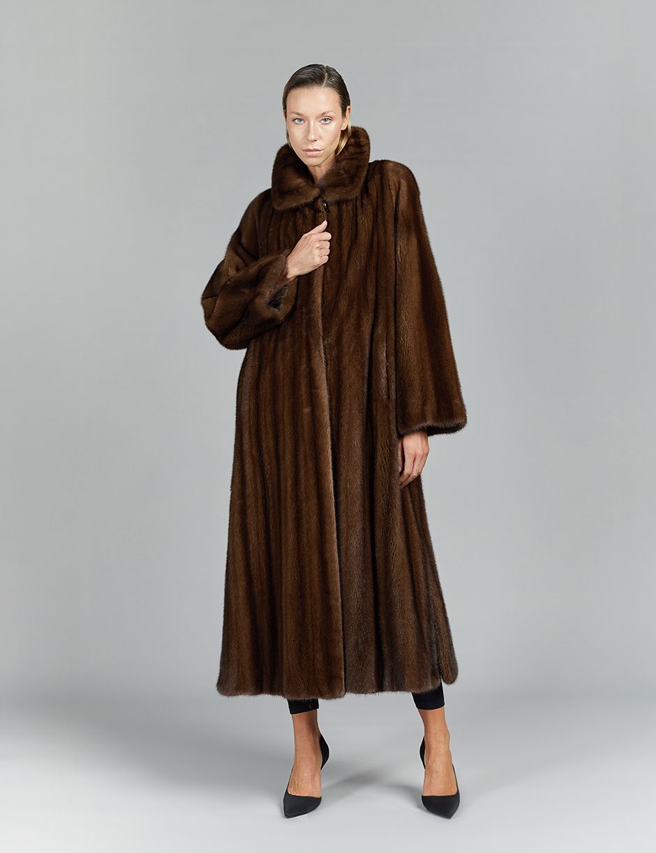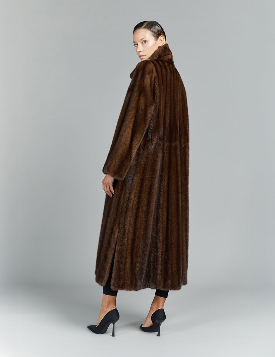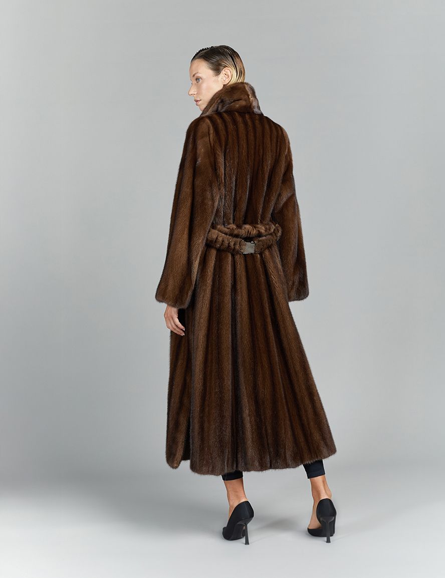 Cappotto in visone, a pelle intera, con cintura, demi buff, 125 cm