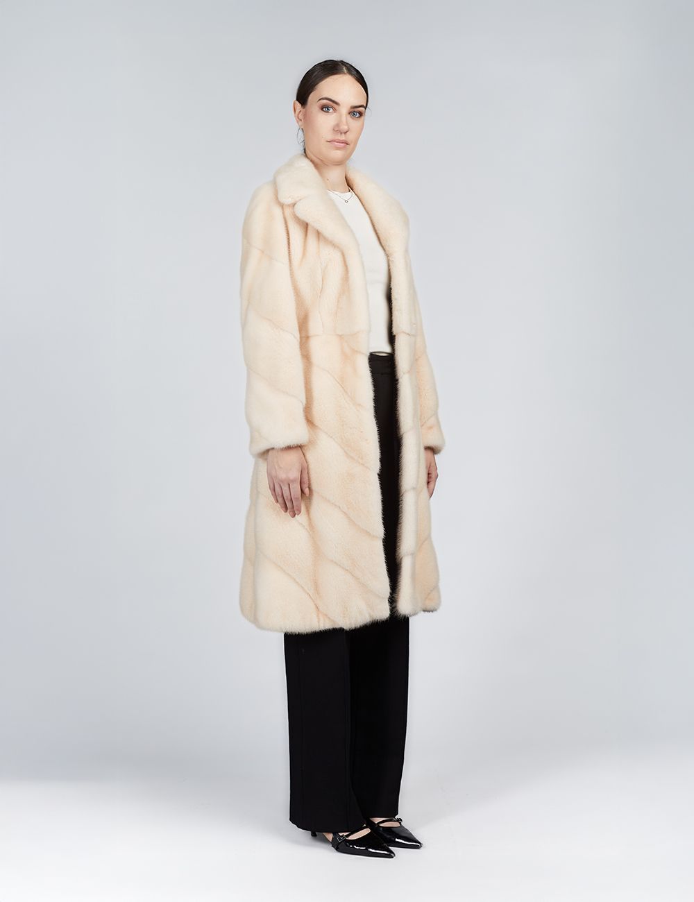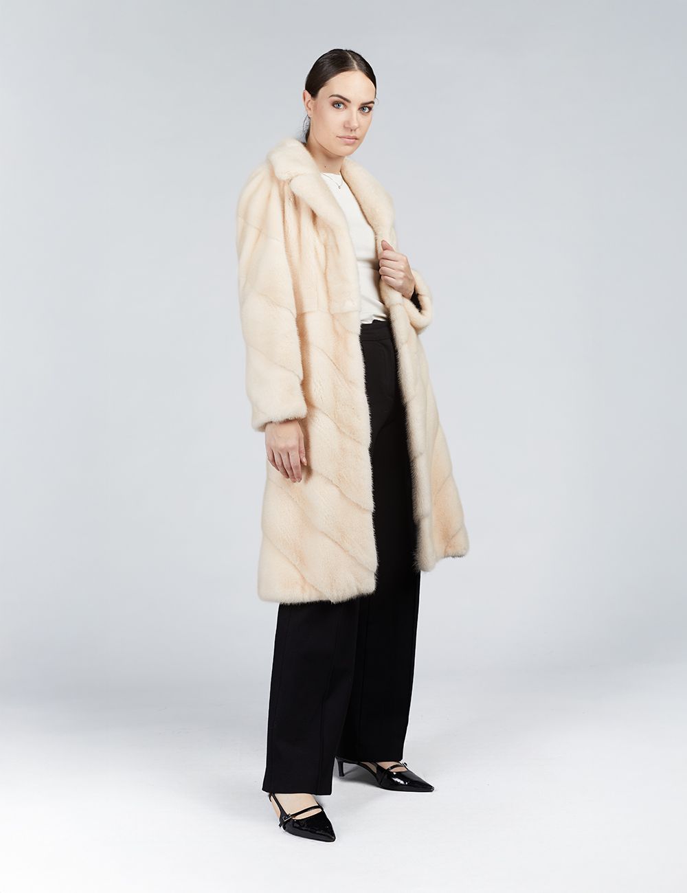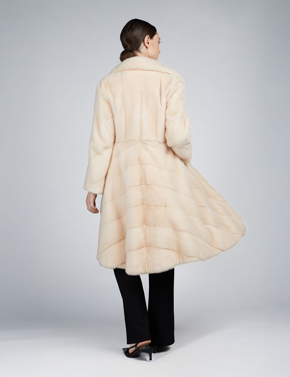 Cappotto in visone aderenre con gonna a ruota panna 100cm