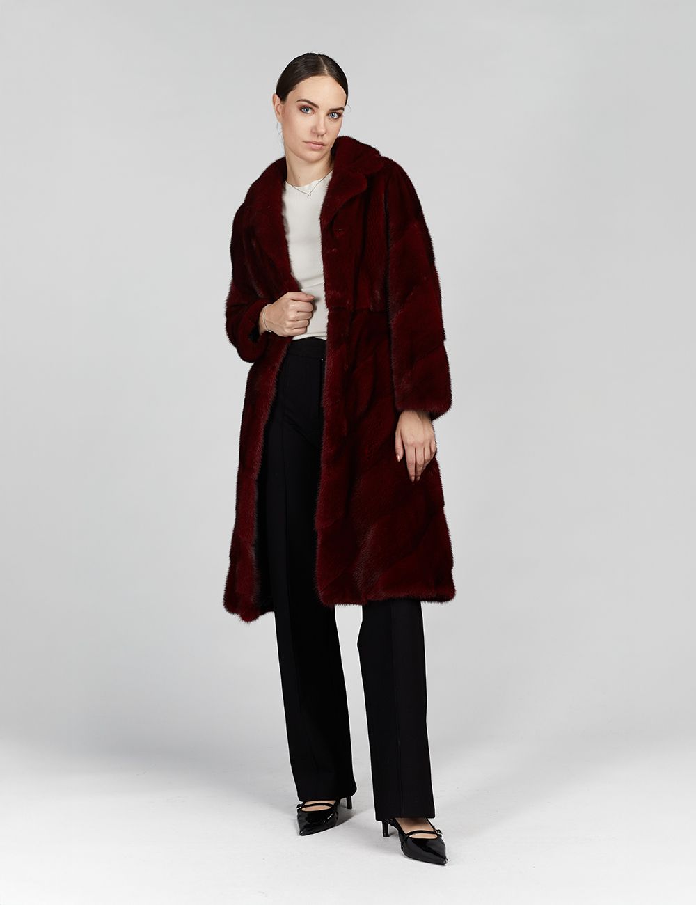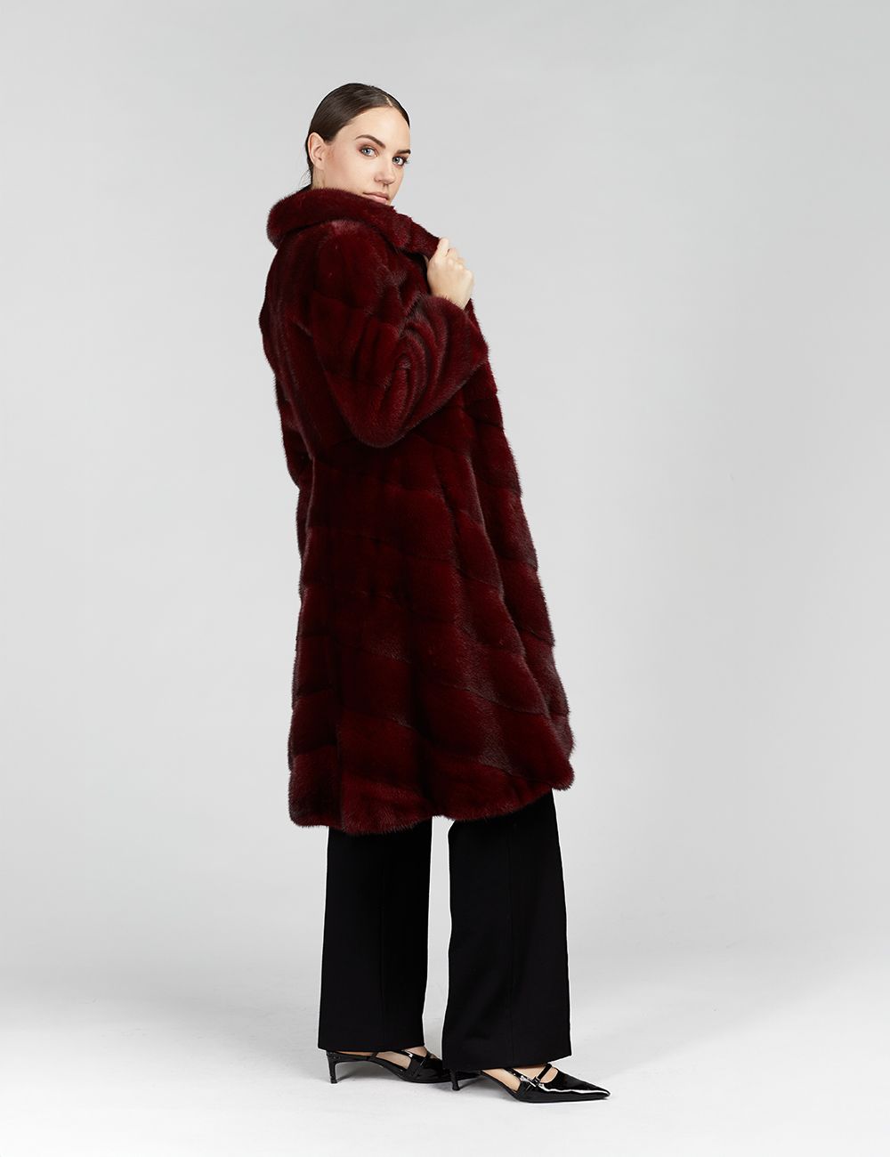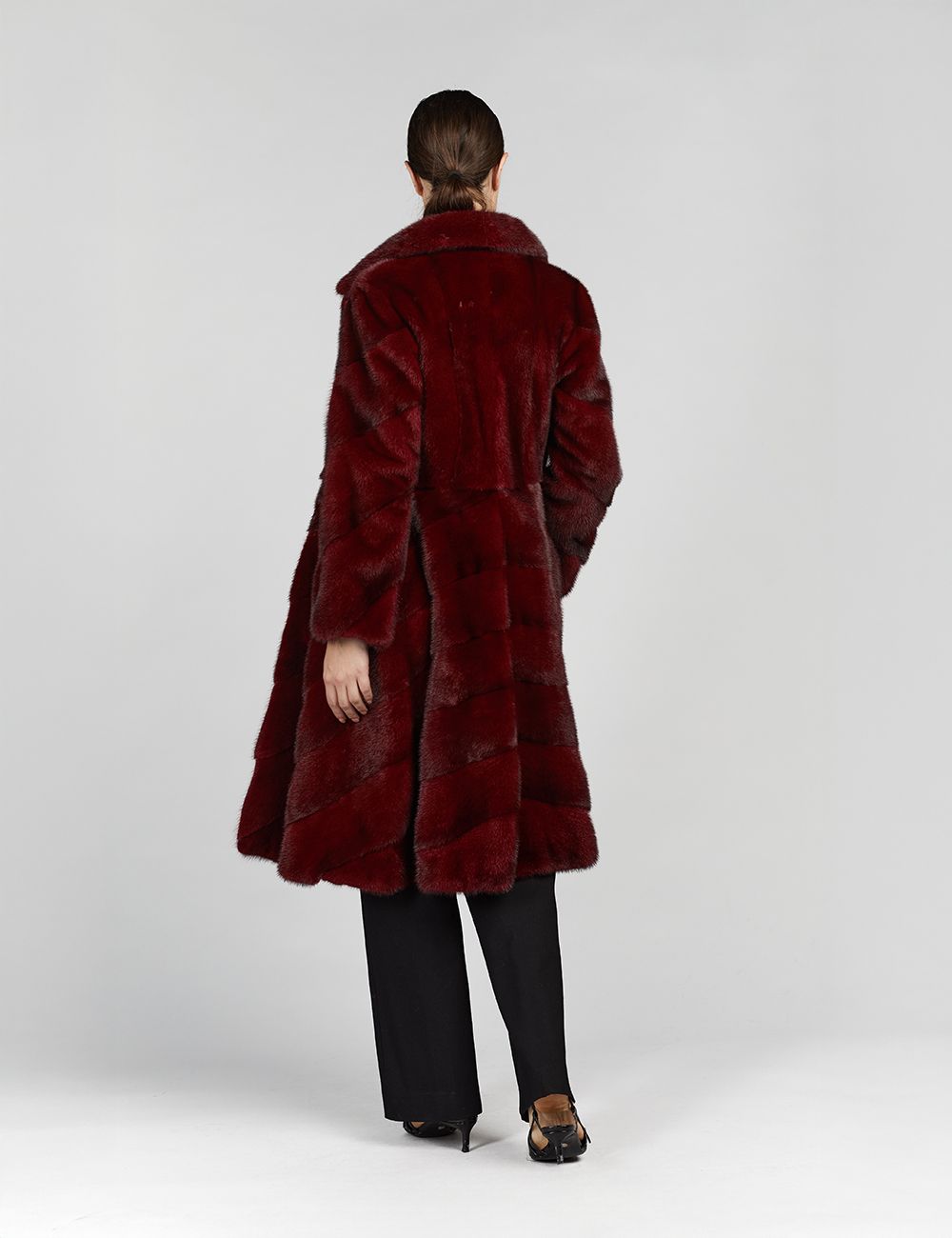 Cappotto in visone aderenre con gonna a ruota rosso 100cm