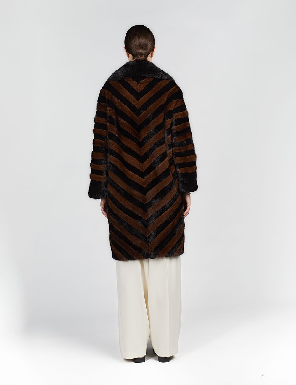 Cappotto in visone al ginocchio con intarsi geometrici demi buff 95cm