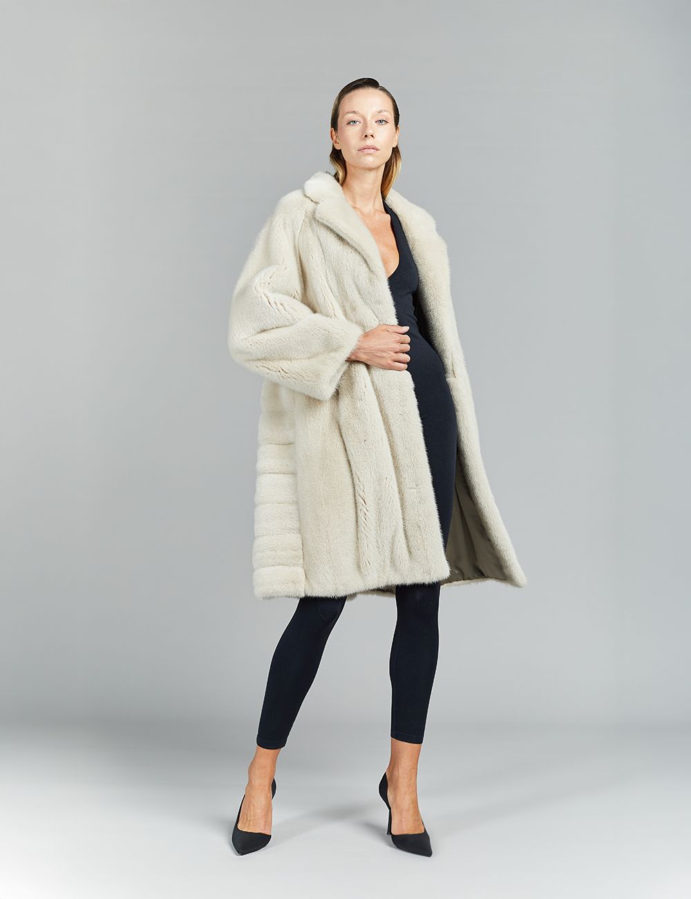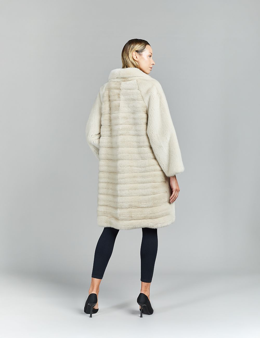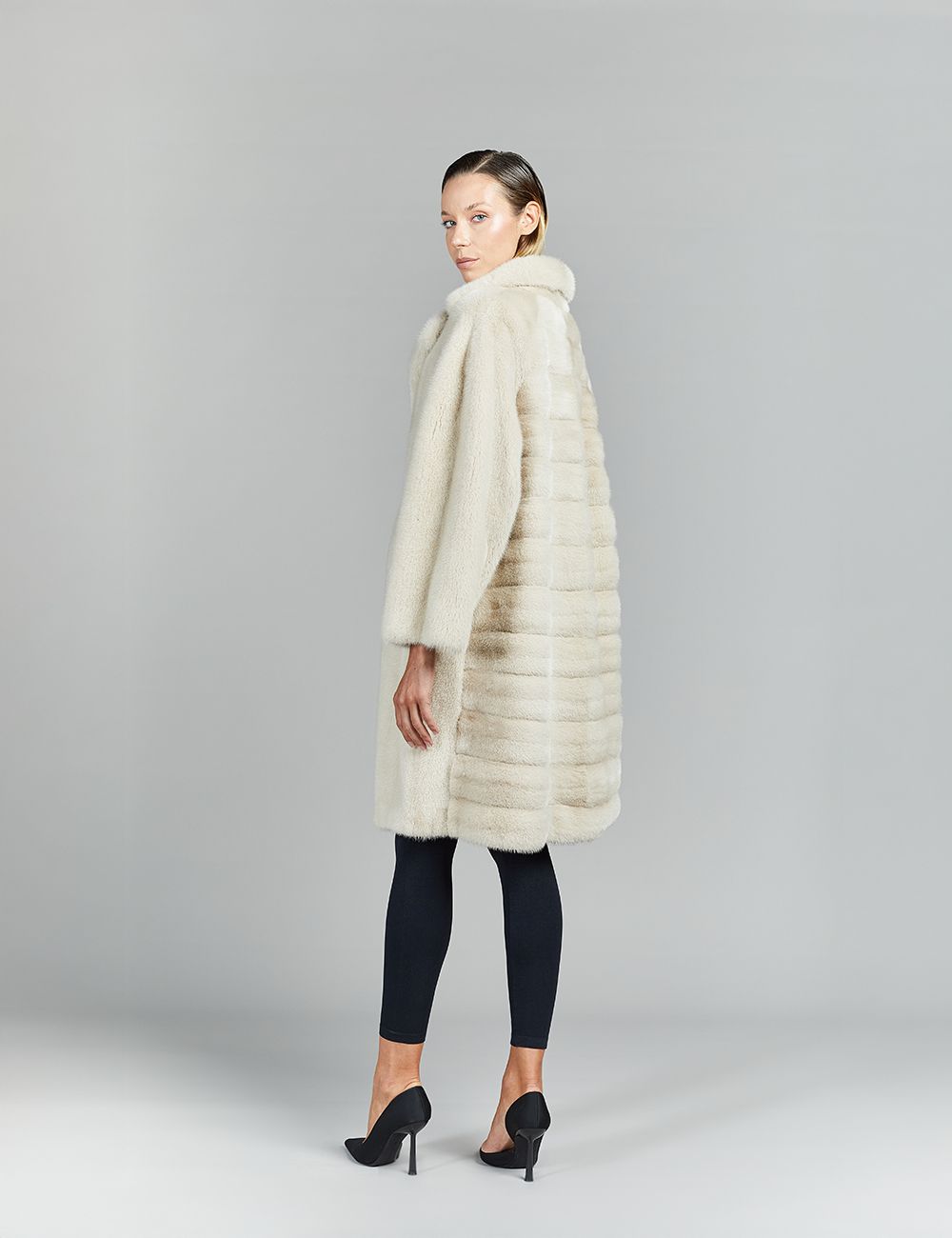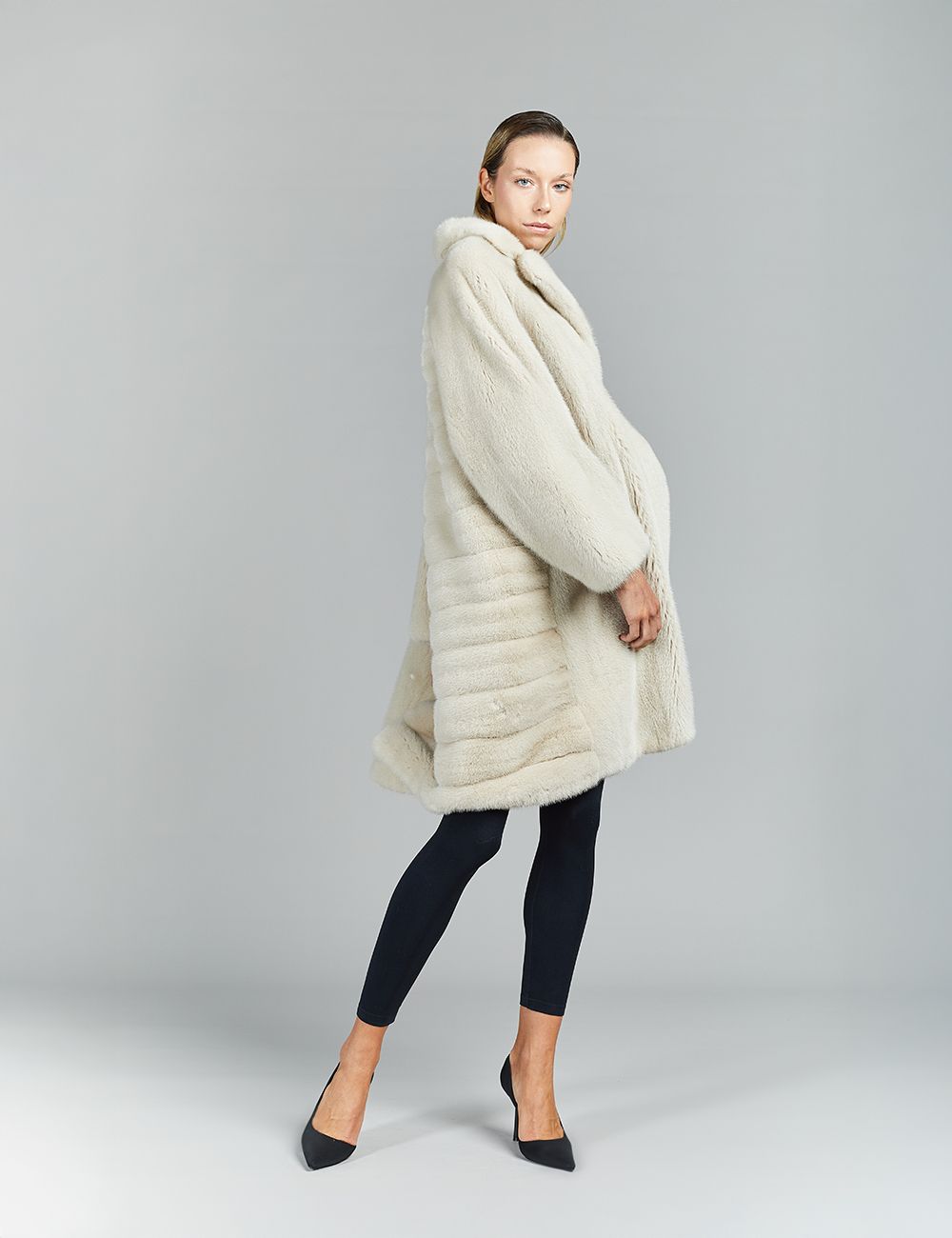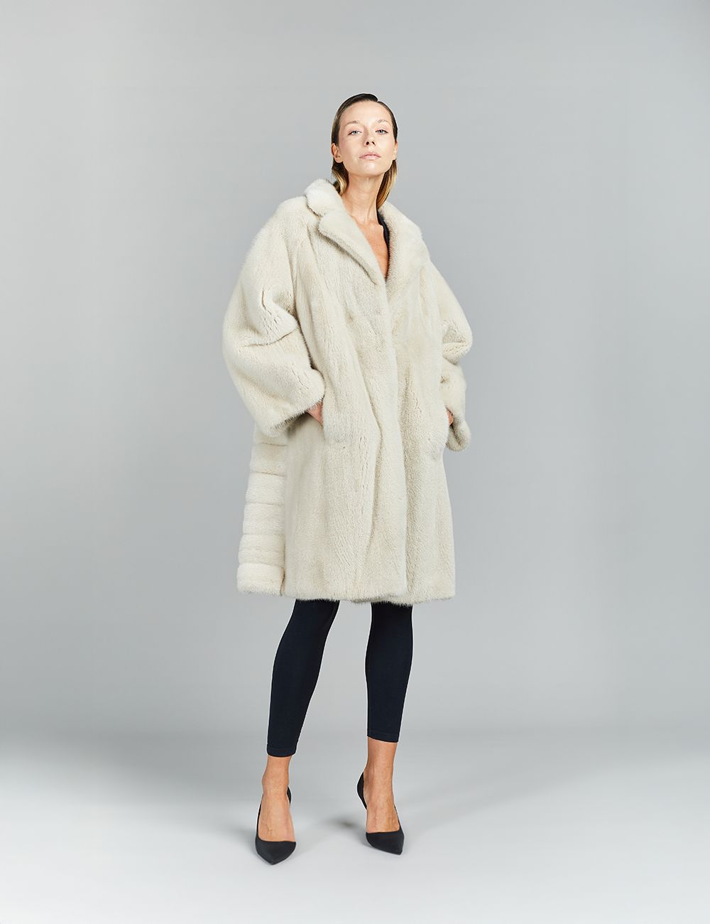 Cappotto in visone, collo inglese, ghiaccio, 95 cm