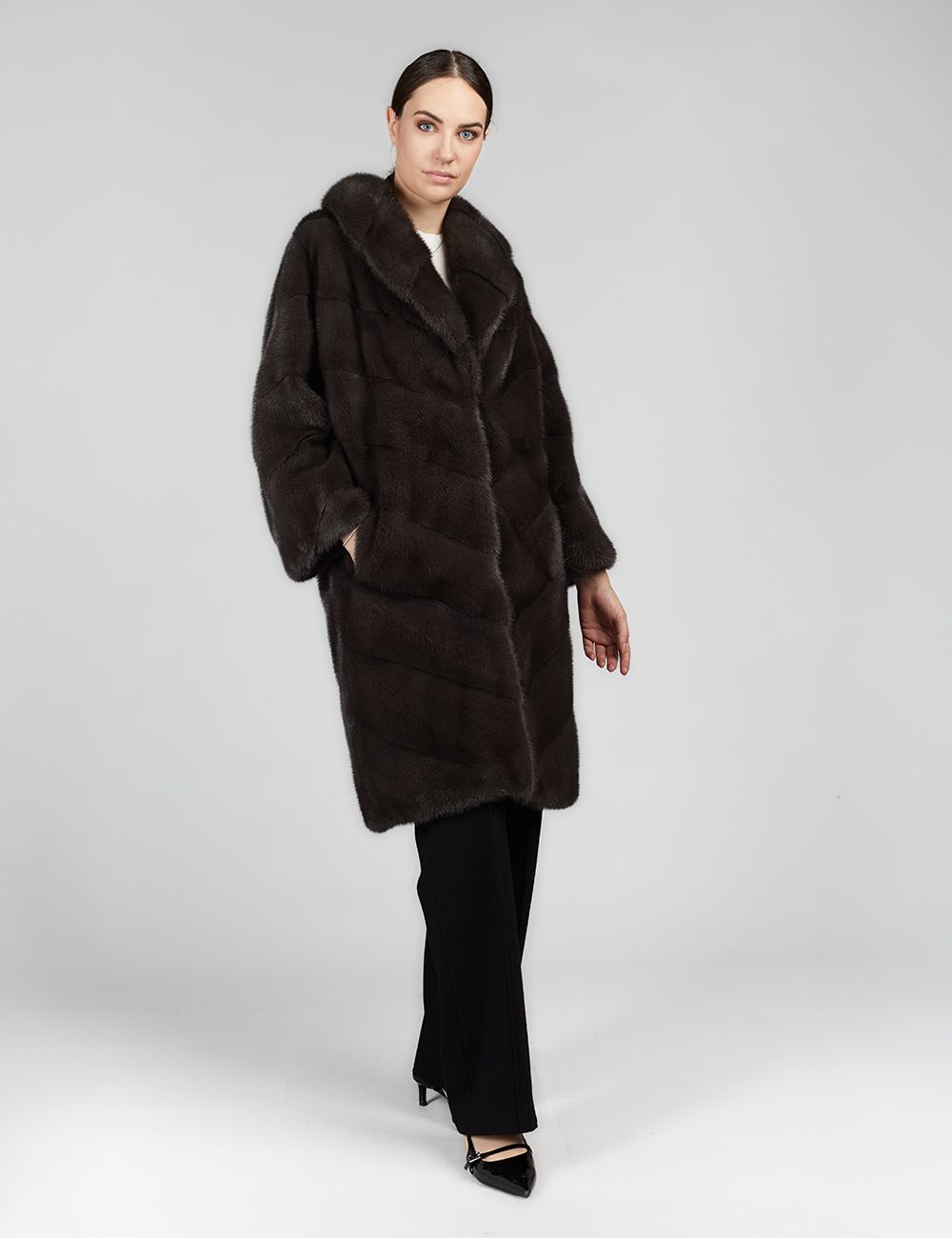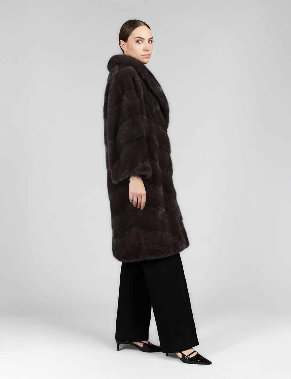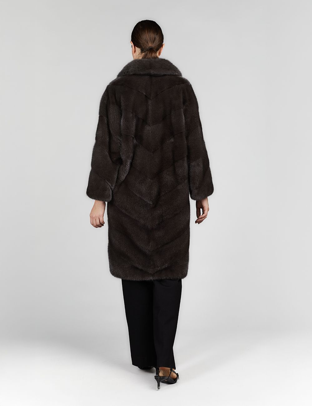 Cappotto in visone diagonale con collo inglese grigio scuro 100cm