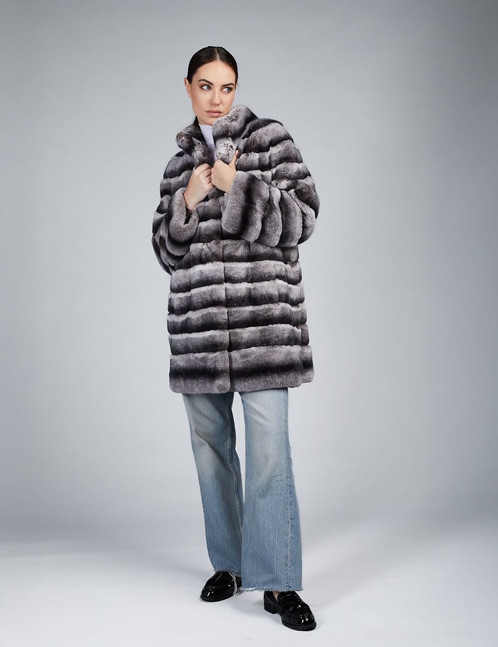 Cappotto in visone pelle intera collo inglese demi buff 115cm