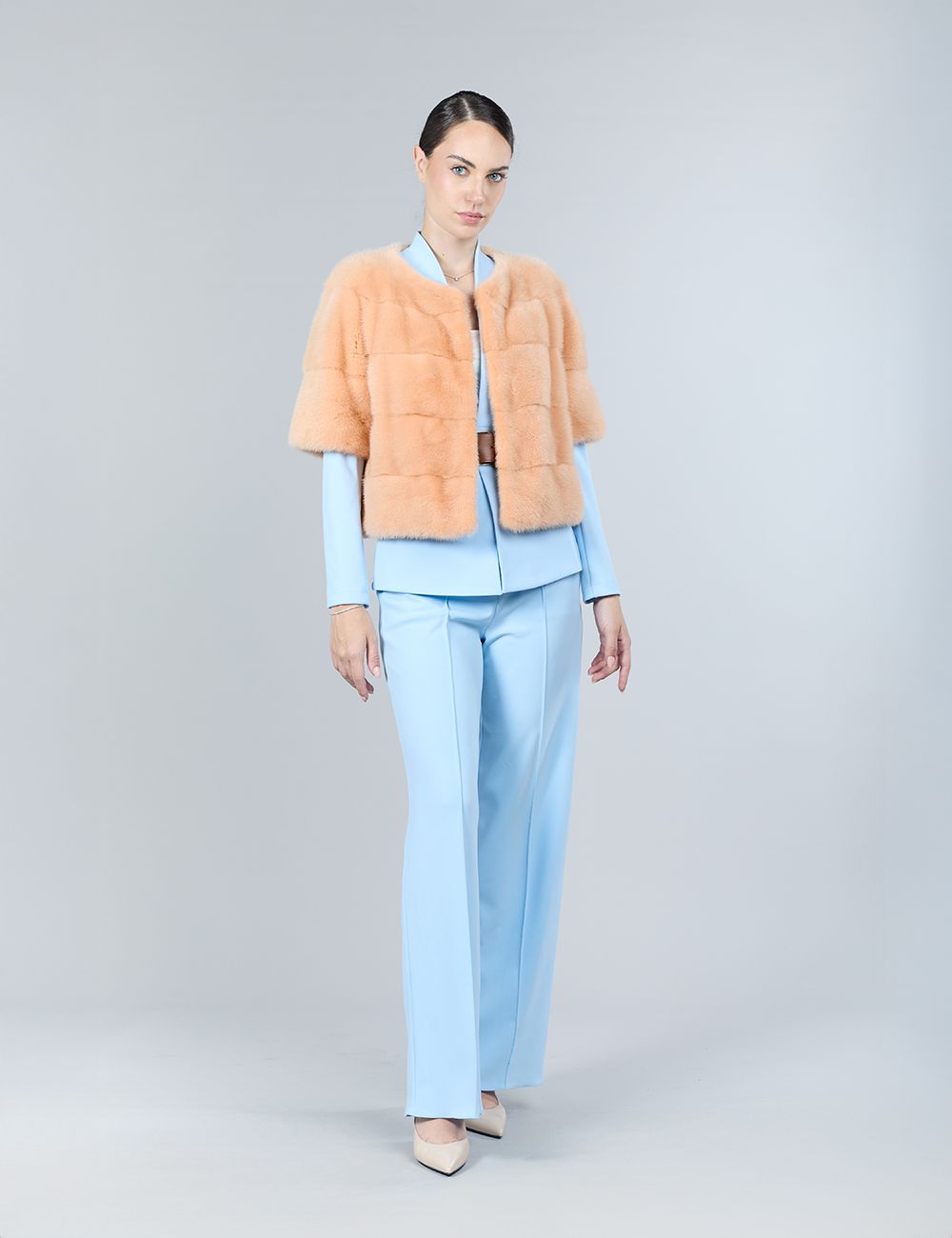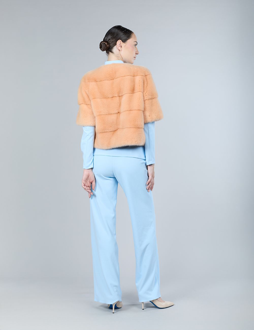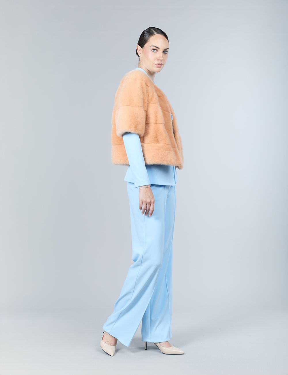 Giacca corta in visone, maniche al gomito, pesca, 50 cm