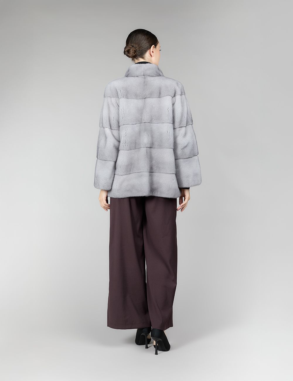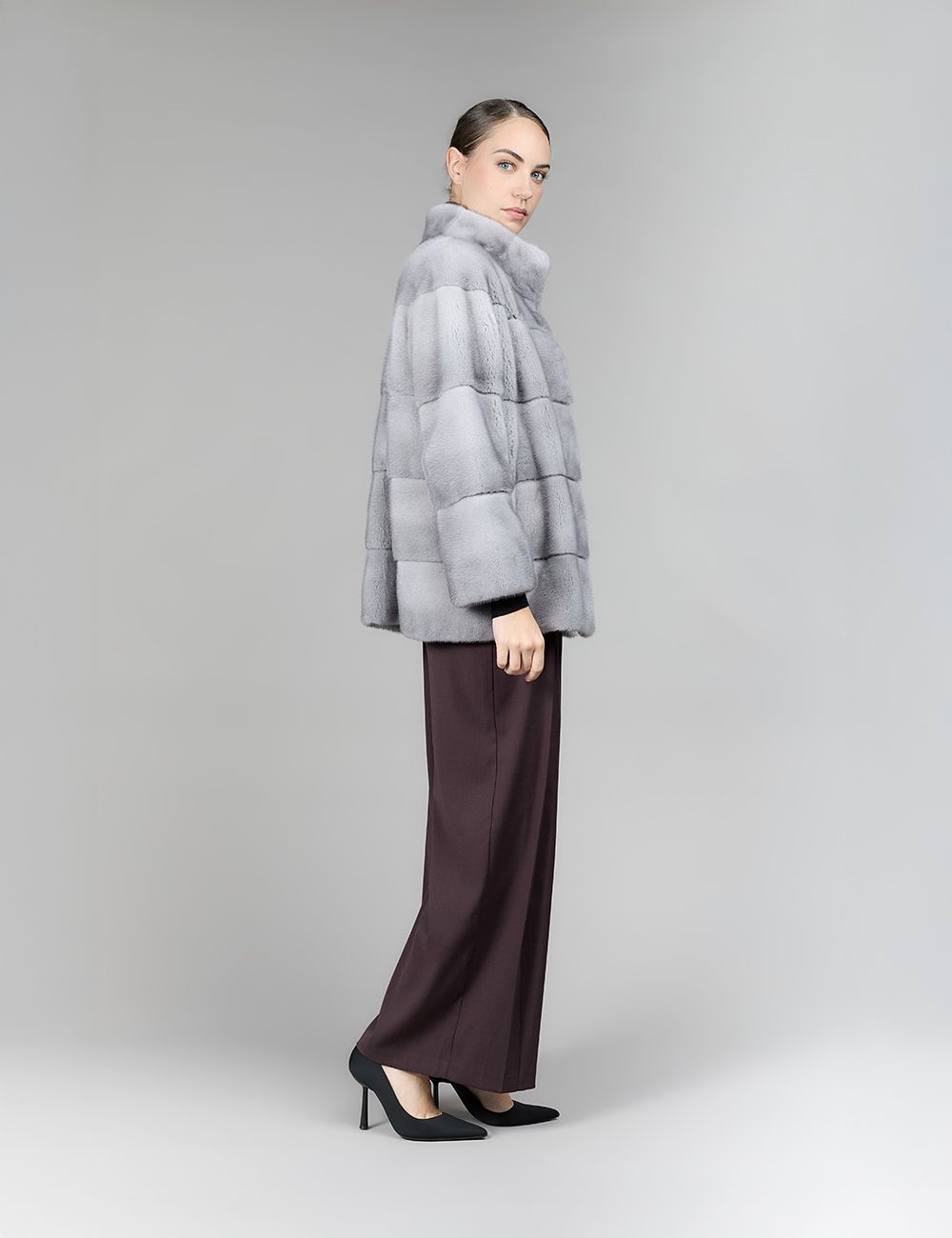 Giacca in visone con collo alto, zaffiro, 70 cm