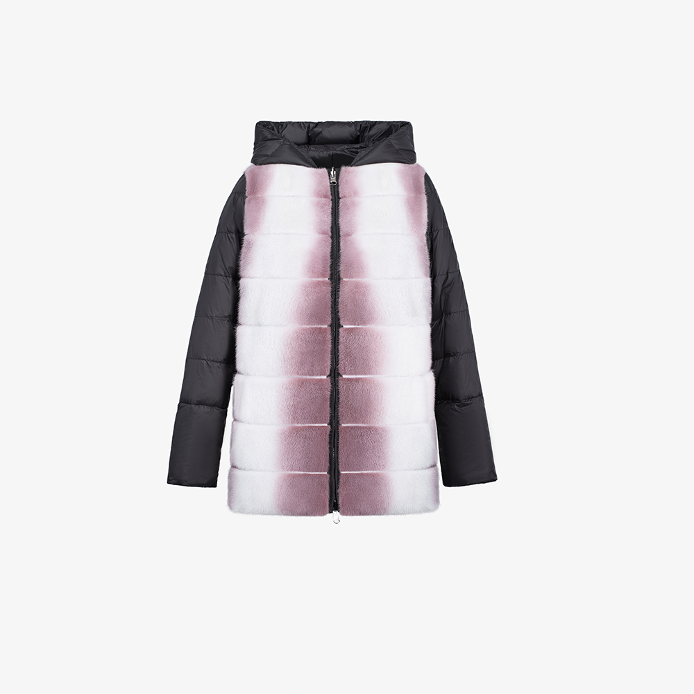 Cardigan lungo di visone filettato con dettagli in cashmere cammello 110cm