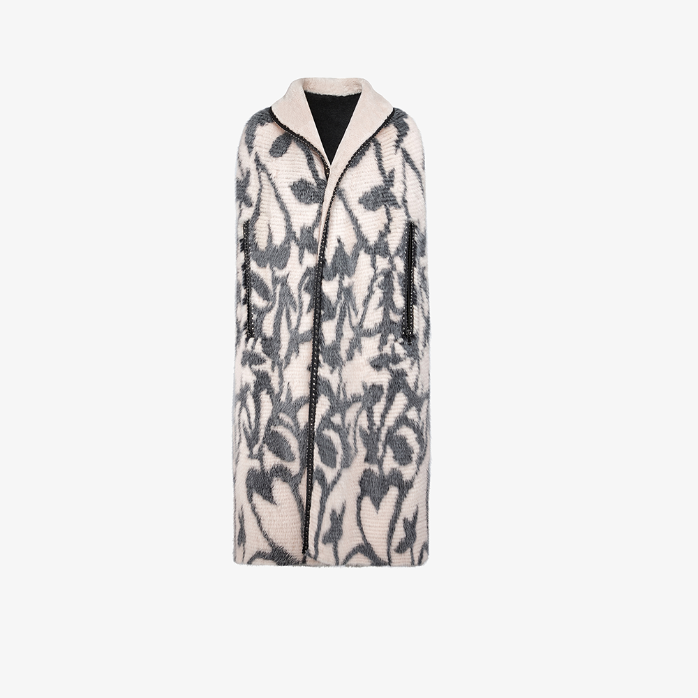 Giacca over in visone con collo inglese pelle intera rosa 70cm
