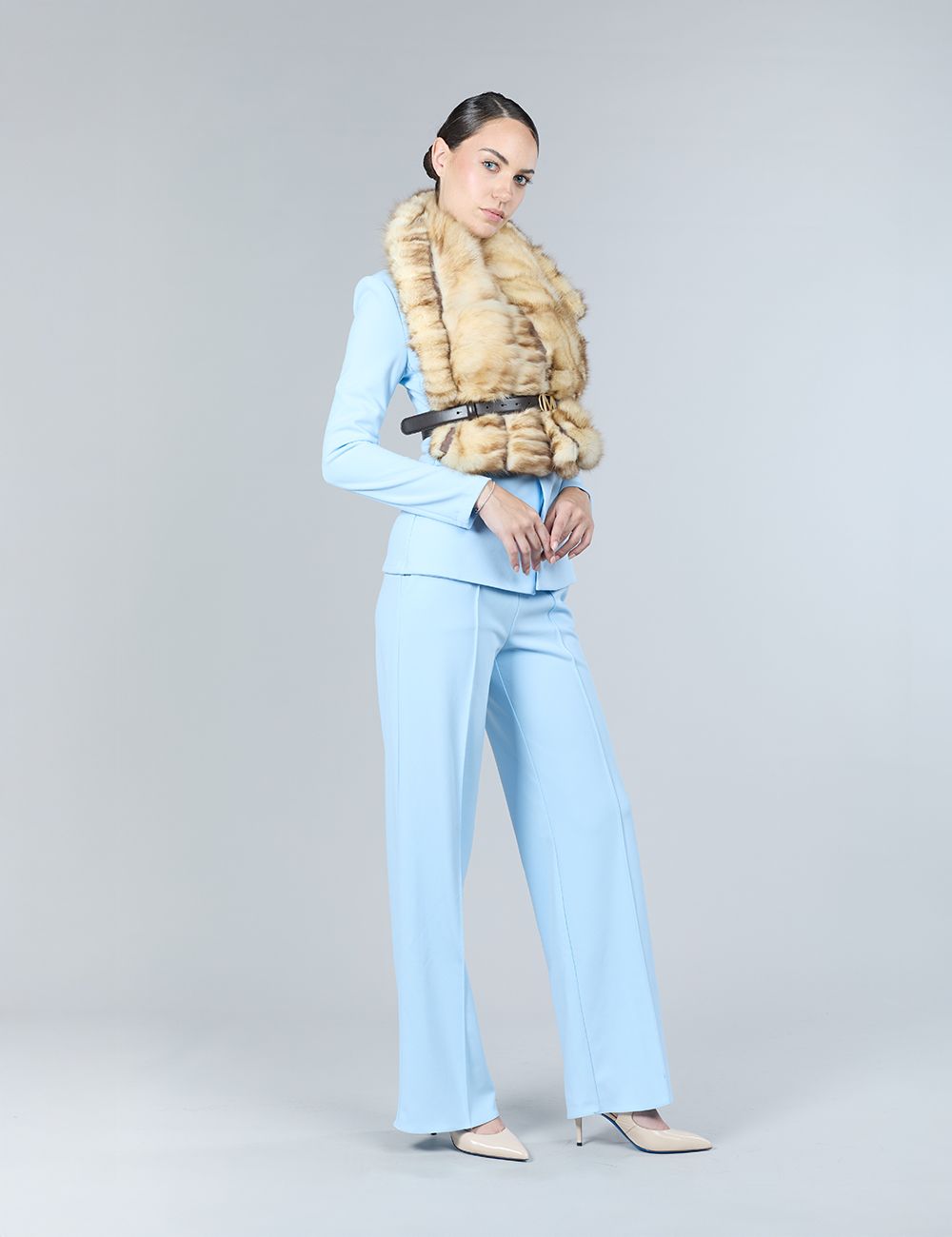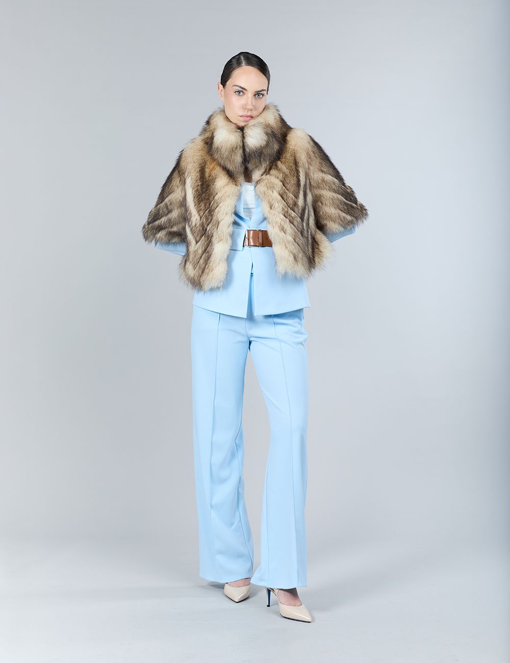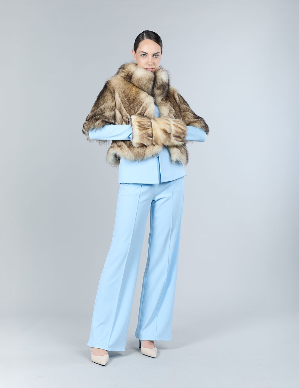 Cappotto in pekan naturale, con parte inferiore staccabile e collo in zibellino, 90 cm