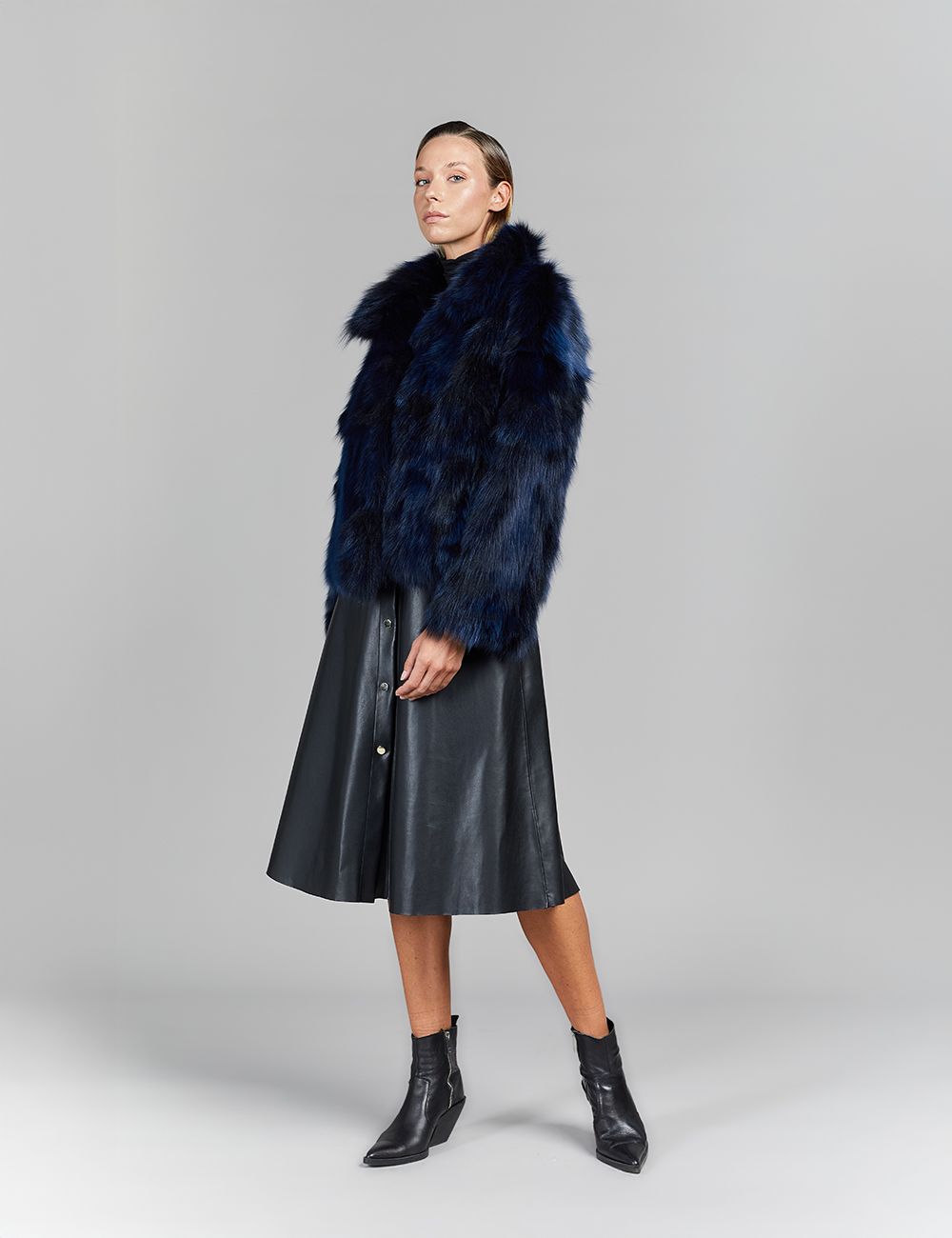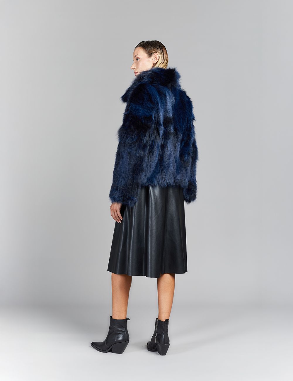 Giacca in volpe con collo alto, colore blu, 55 cm
