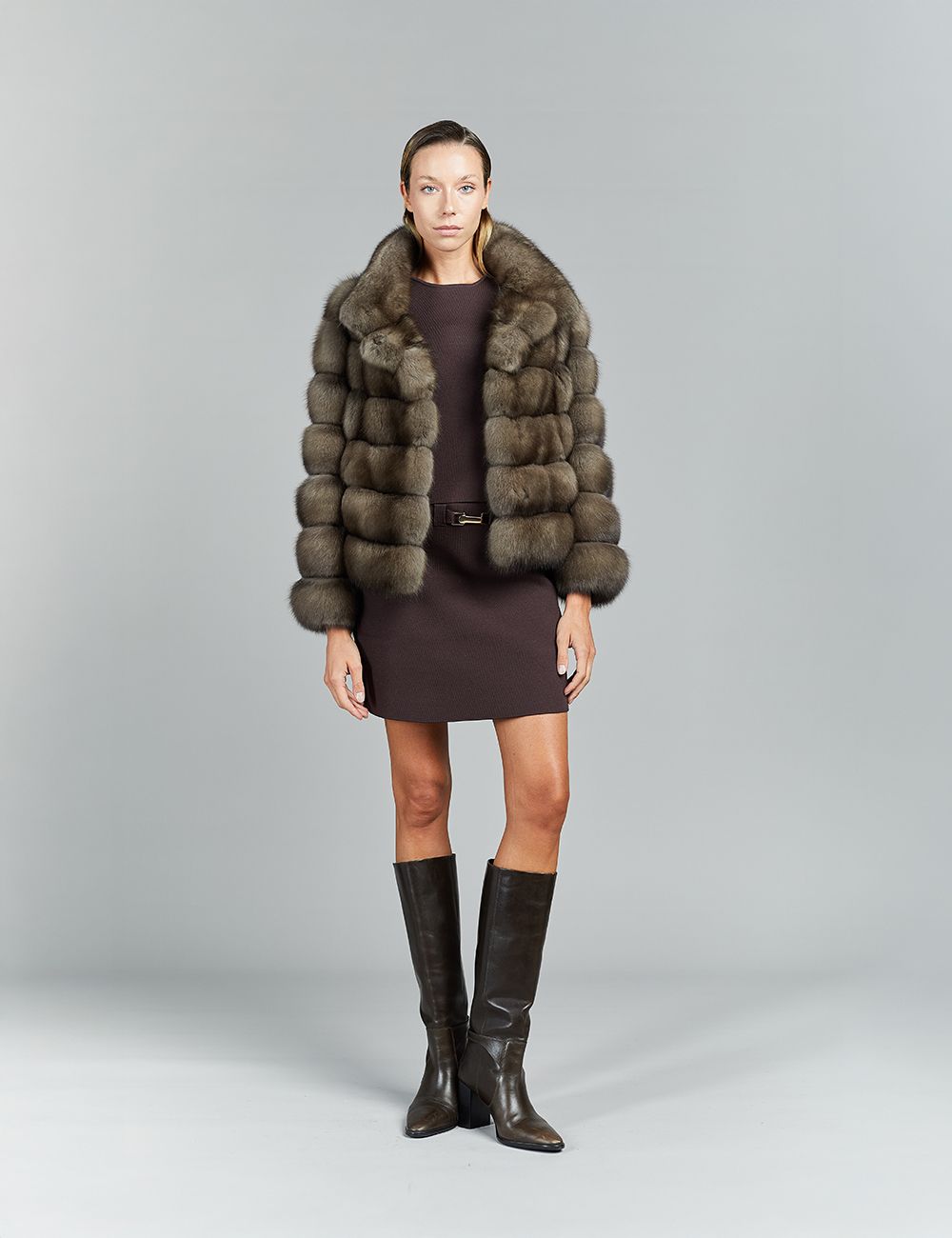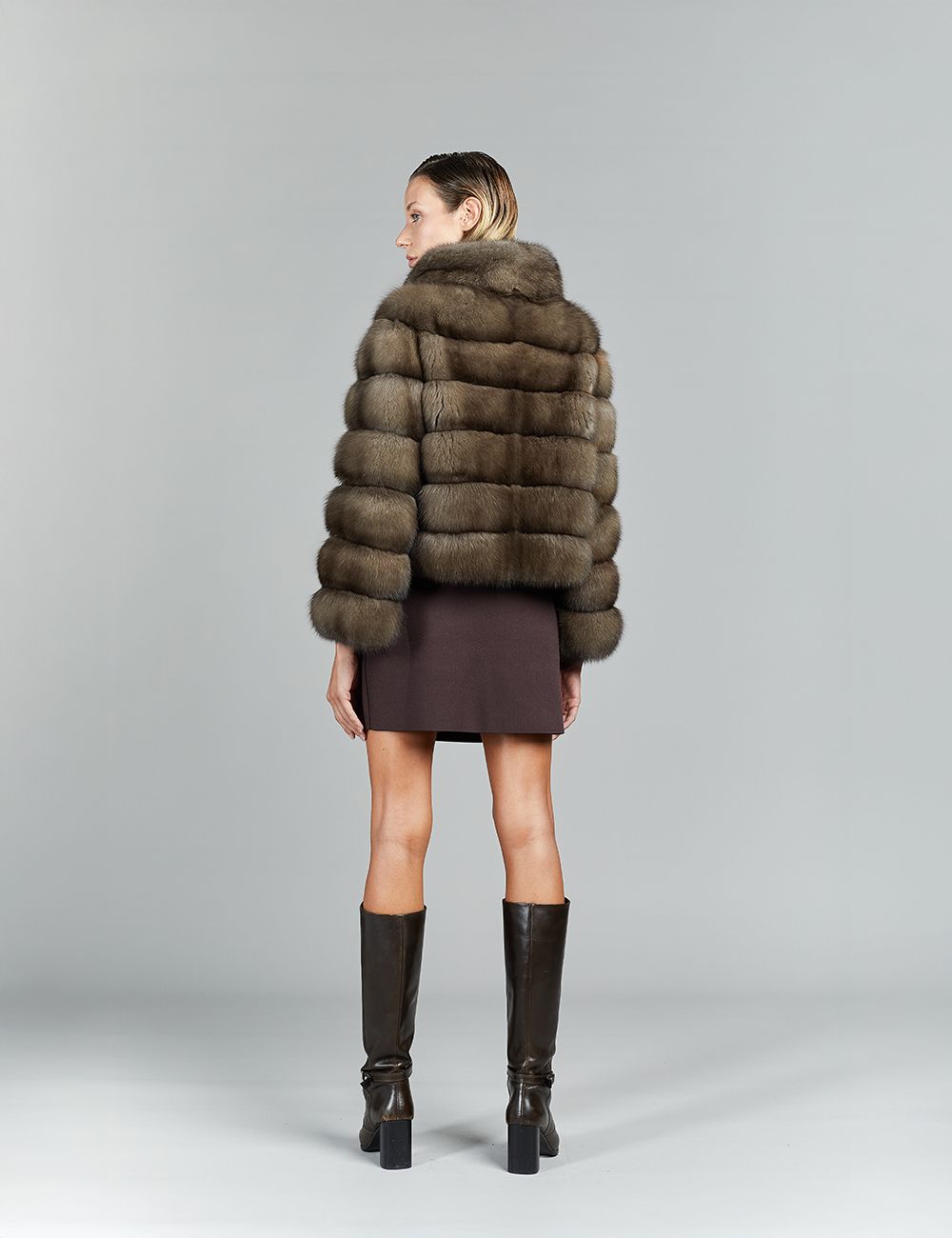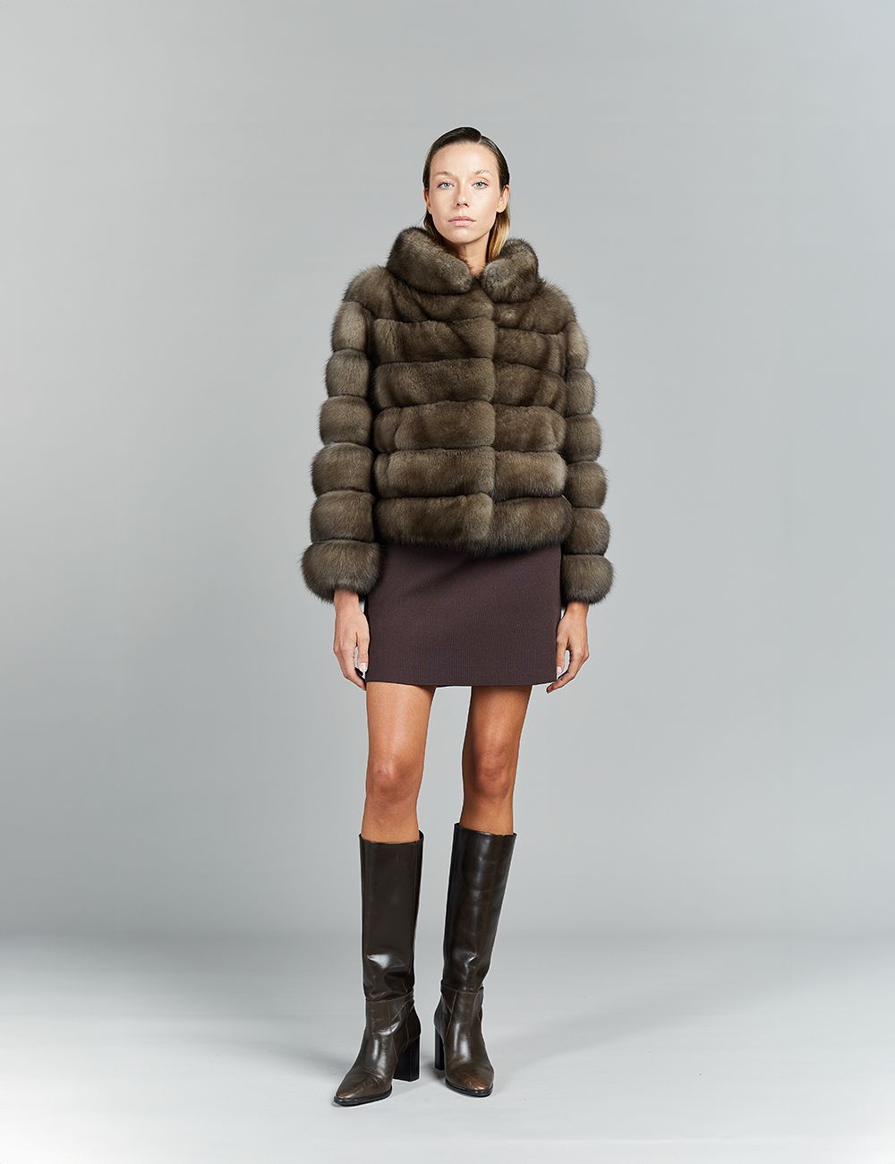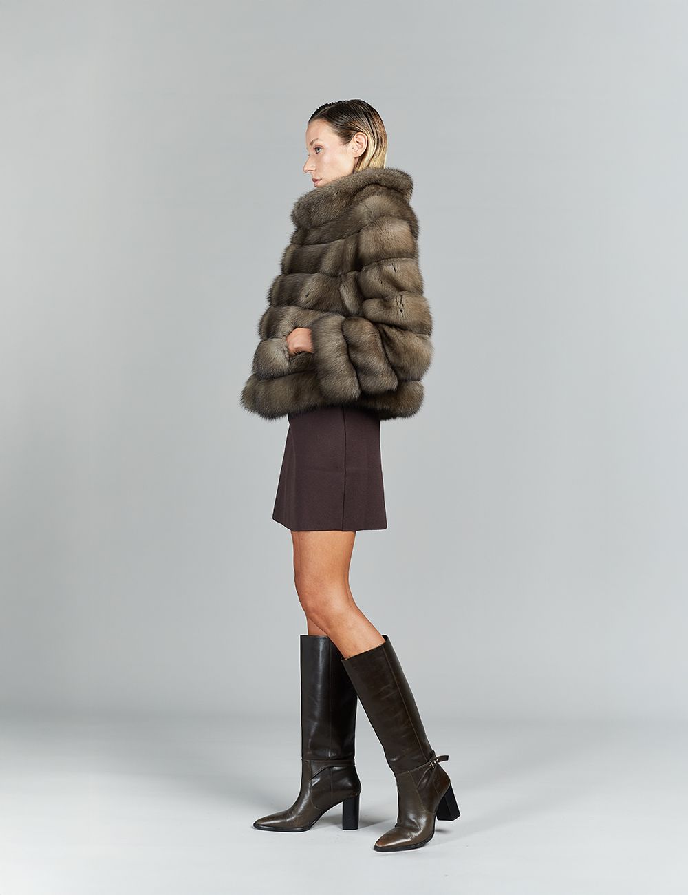 Giacca in zibellino con collo alto, colore tortora, 50 cm