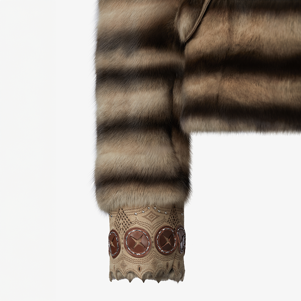 Giacca in petit gris con ornamenti e collo inglese decolorato 60 cm